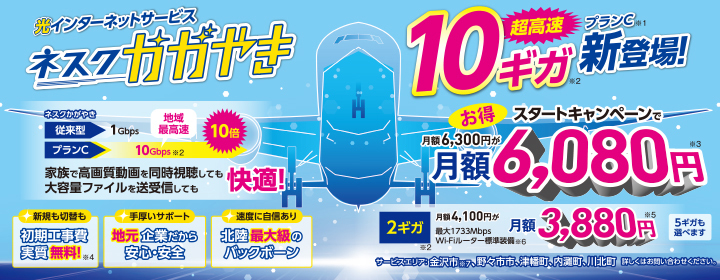 - ※1:「ネスクかがやきプランC」は、金沢ケーブル株式会社の設備を使って当社が提供する光インターネットサービスです。
